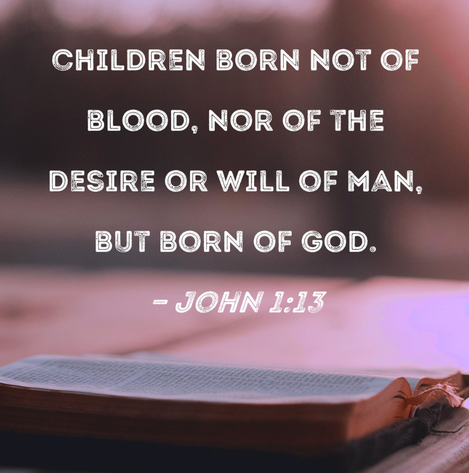 13 who were born, not of blood, nor of the will of the flesh, nor of the will of man, but of God.